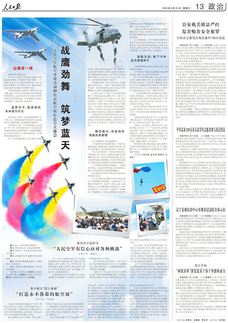 人民日報大版面聚焦空軍航空開放活動和長春航空展:戰鷹勁舞 筑夢藍天
