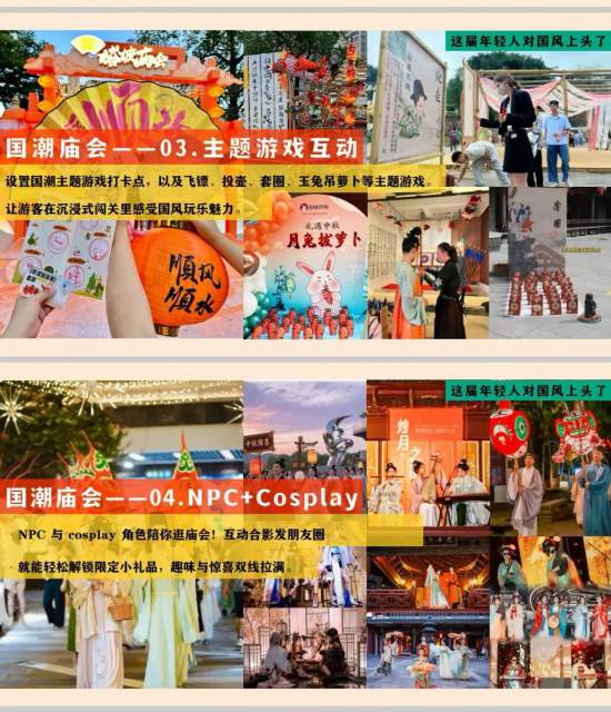 NPC與Cosplay團隊邀你合影發圈領小禮;漢服戲曲高蹺巡演、“醒獅點睛”“采青吐?!北硌莩蟹諊?,更有畫展、酒吧樂隊演出添活力。