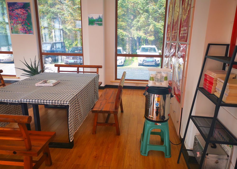 林區檢查站,已成為溫馨的休憩點,為游客們“加油充電”,暖意融融。鋪著格子桌布的餐桌、擺放整齊的木椅、窗邊冒著熱氣的熱水箱和免費紙杯、Wi-Fi、衛生間等,細節處盡顯用心用情,全方位為游客提供周到的服務。室內溫暖如春,室外熱情似火?!皝?,大姐,給您續上熱水!”一位防火員正俯身從粉色保溫壺中,為一位女游客手中的保溫杯添熱水。在另一處停車場,一群橙色制服的消防員忙著用保溫壺為游客倒水,陽光灑落,水汽氤氳,歡聲笑語間,防火知識的種子已悄然播撒。