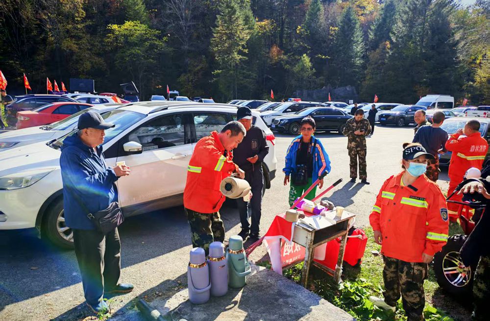 在G331沿線等旅游服務點,身著紅色或藍色制服的防火員微笑著將一杯杯熱水和宣傳冊遞到游客手中,并熱情地回答著有關森林防火、游玩攻略等各種問題。桌上擴音器、熱水壺、紙巾等一應俱全,“森林防火護生態 便民文旅促和諧”的標牌醒目而溫馨?!拔覀儾粌H是防火員,還是義務講解員、導游、攝影師,更是‘活地圖’?!币晃徽诂q春市森林火災預防中心執勤的防火員說道。他手持對講機,目光如炬,守護著車輛與山林的安全,也隨時準備為游客指路答疑。