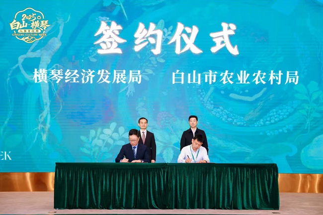 隨后,來自吉林省、橫琴的領導共同為“白山—橫琴”人參文化周啟幕。在現場嘉賓見證下,合作區經濟發展局局長吳創偉與白山市農業農村局局長李樹軍簽署框架協議,將為長白山人參搭建通往港澳及海外市場的便捷橋梁。